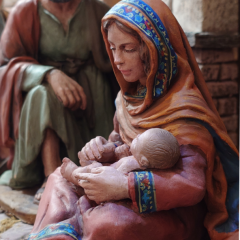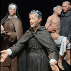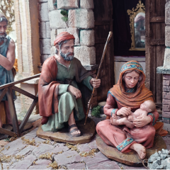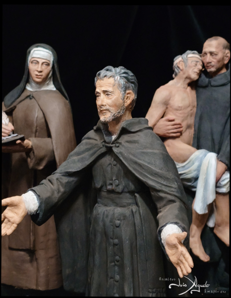 Esculturas de 24 cm, realizadas a palillo de forma exclusiva, policromadas al óleo, con retratos de San Juan de Ávila, San Juan de Dios y la Santa Condesa, Sor Ana de la Cruz. Todos en actitud de adorar al niño recien nacido.