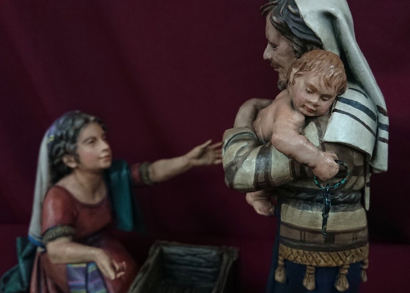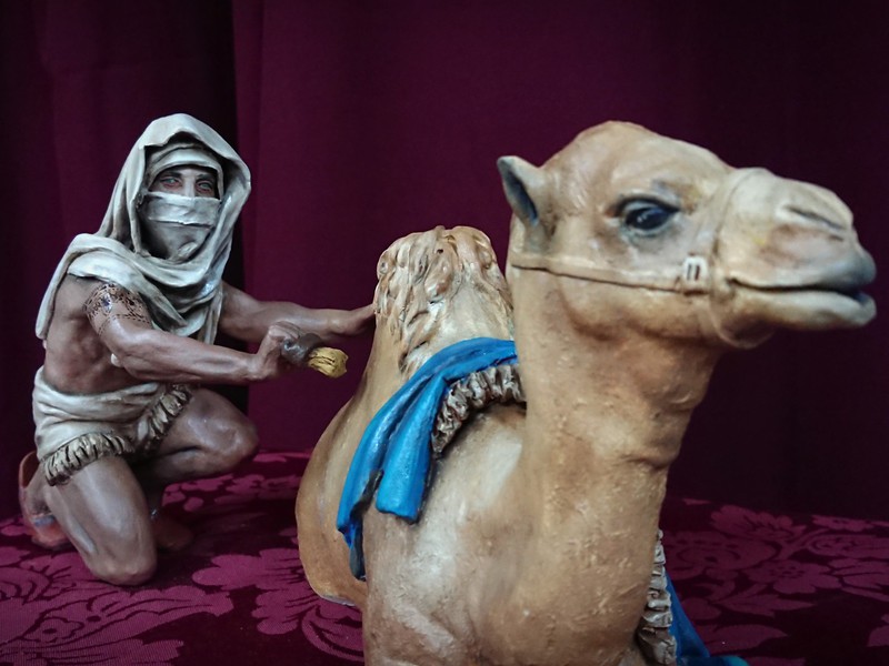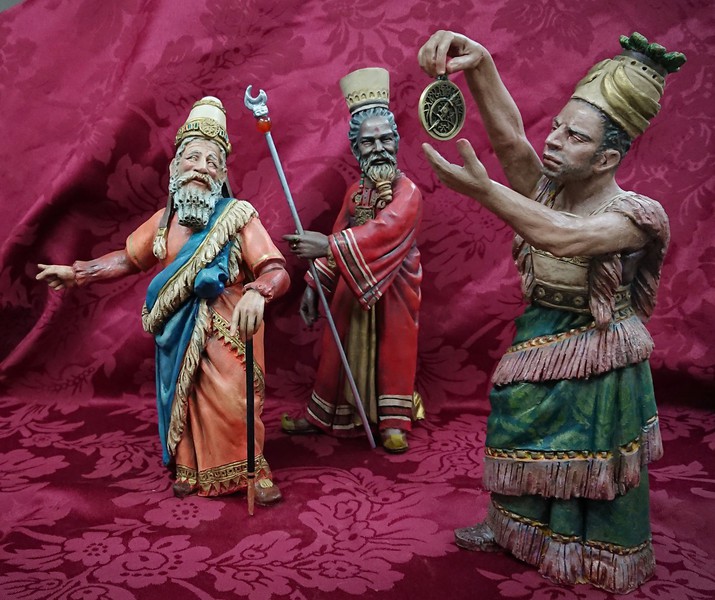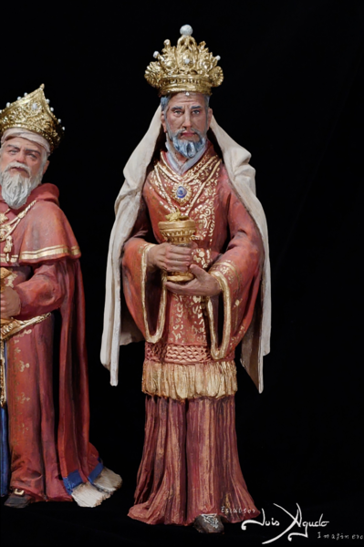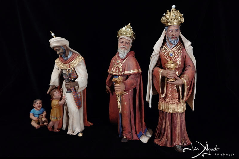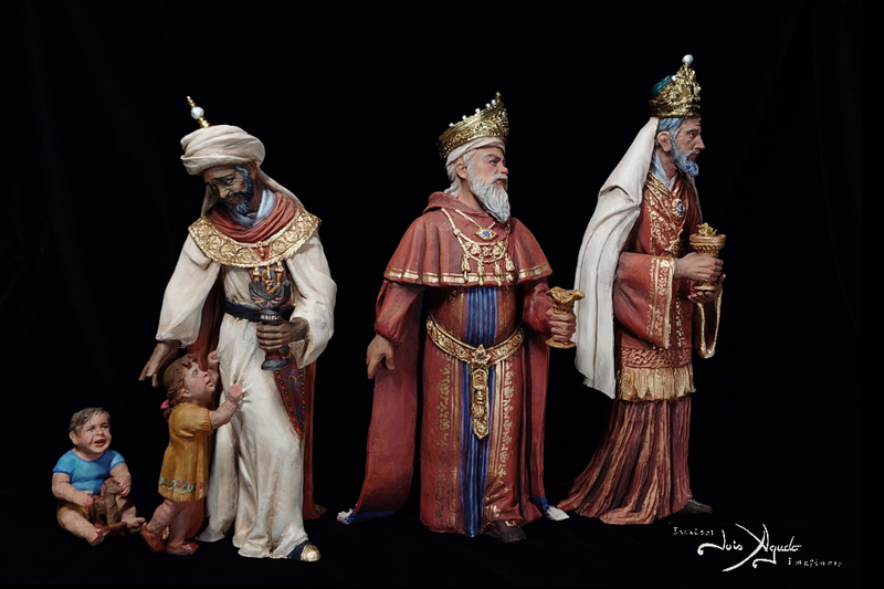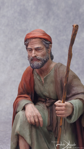 Esculturas de 24 cm de altura, modeladas a palillo de forma exclusiva y policromadas al óleo, para un belén particular en Córdoba.