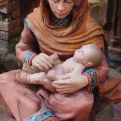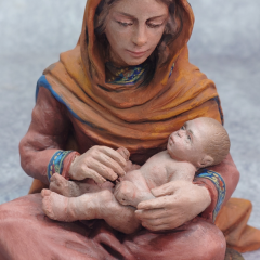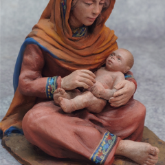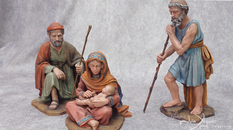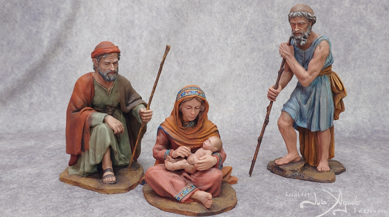 Esculturas en terracota para un belén de 22 cm de altura, policromadas al óleo.
