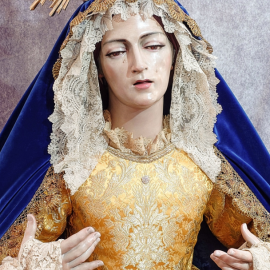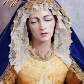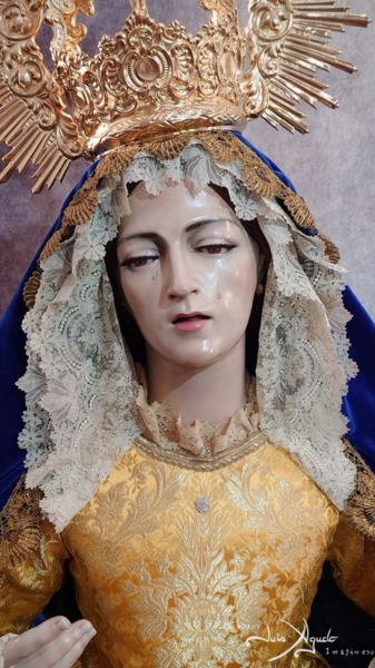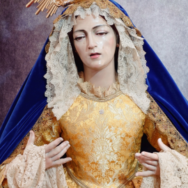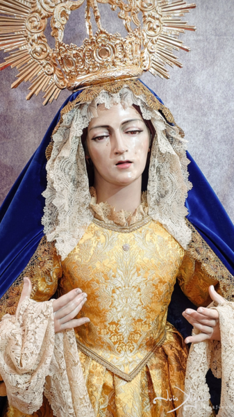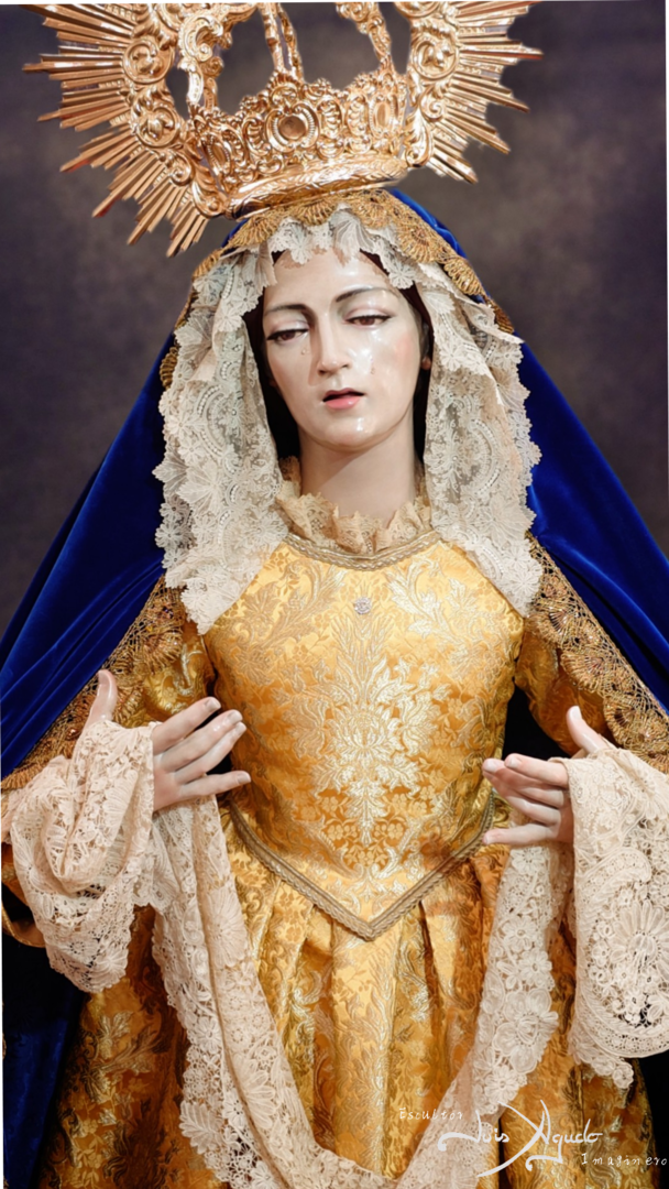 Primera imagen de la Virgen María, con la advocación de la Inmaculada Concepción, que tallé en madera y que preside mi taller. Es una Imagen de candelero en madera de cedro.